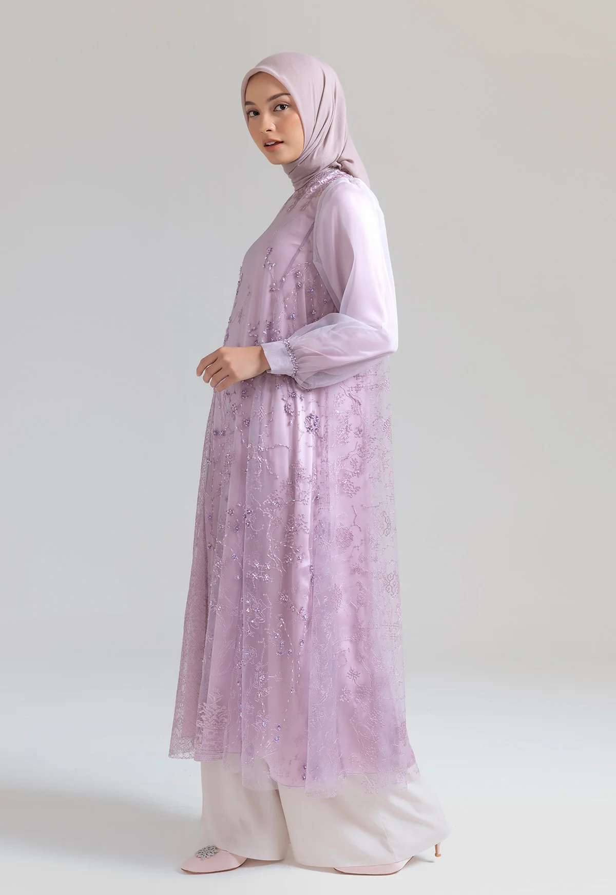 The BASIA DRESS from RiaMiranda Signature Collection is a stunning exclusive midi dress. Crafted with luxurious tulle and intricately decorated with beads, it will bring elegance to your wardrobe. Available in sizes S-XL, this piece is perfect for any occasion.
